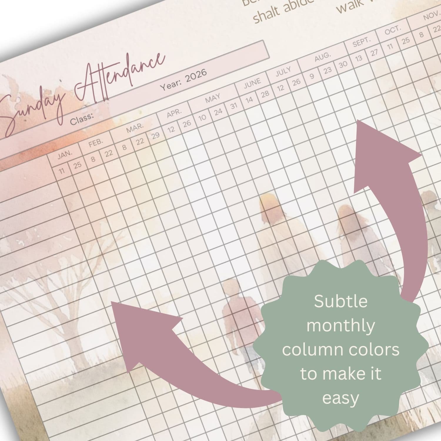 This Young Women 2026 attendance tracker is perfect for a Young Women Secretary. YW will love the beautiful, calm design, and you will love that you only need to print it once!!! Printing every quarter is tricky to remember, and you have plenty to remember already. We love only printing once, and the young women love have a more interesting-looking roll.