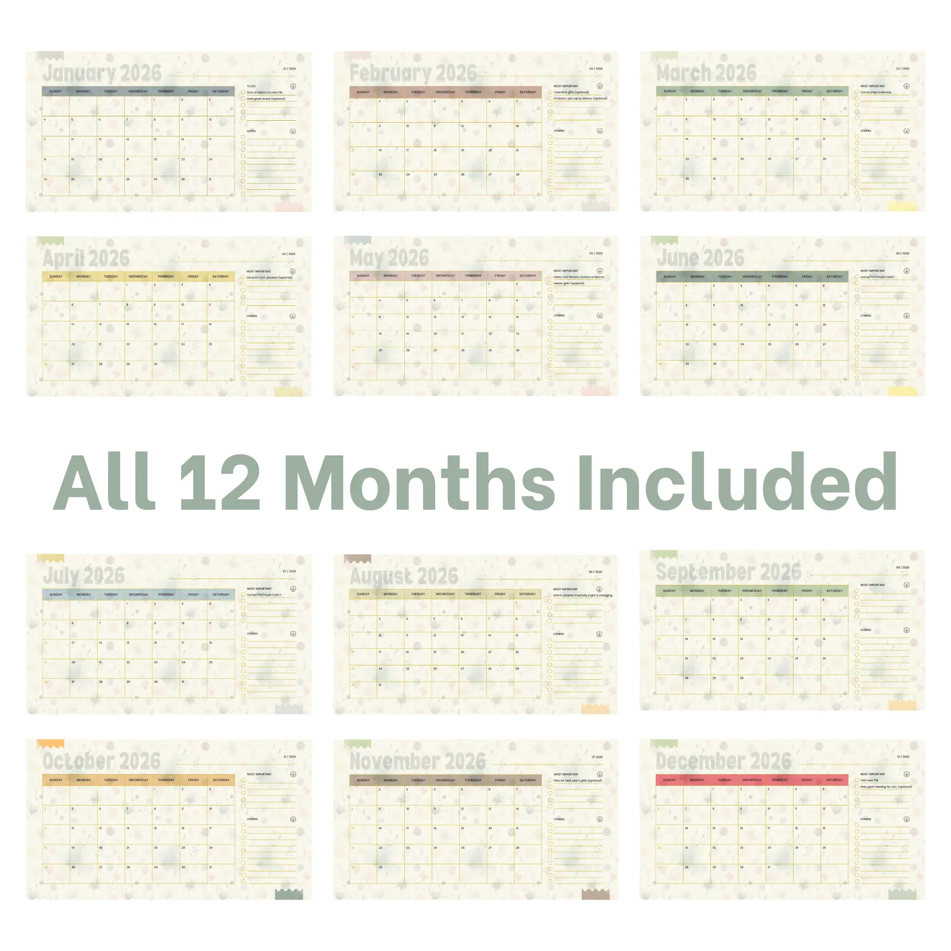 This YW 2026 calendar is beautiful AND helpful. You can fill in your activities, meetings, etc. for your ward.